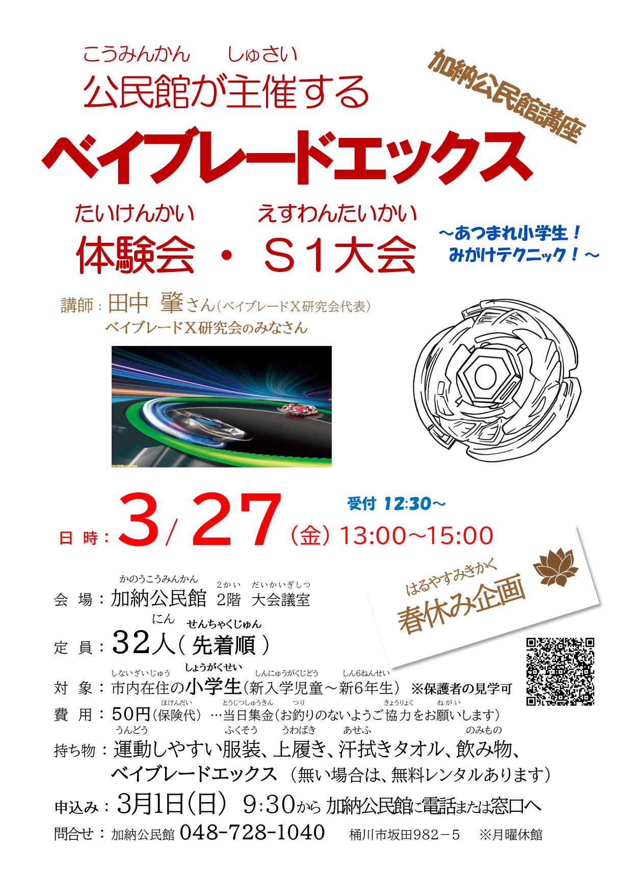 - 加納公民館講座「公民館が主催するベイブレードエックス体験会・S1大会」