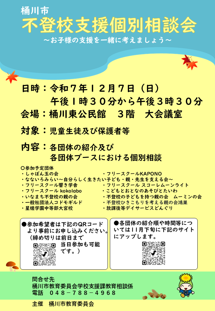 学校へ登校することが難しいお子様を持つ保護者の皆様およびご本人様を対象に、相談会を実施いたします。
